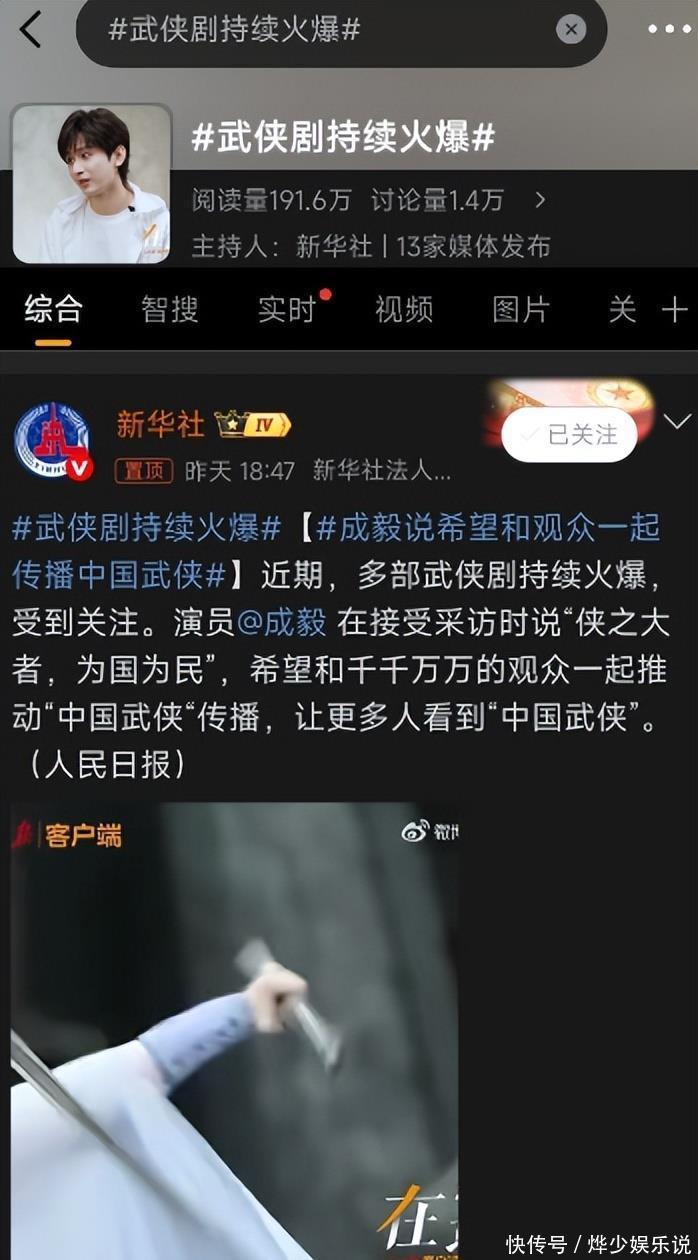 03 央媒为何力挺?就在舆论纷扰之际,央媒的接连发声引人深思。 11月,央媒不仅发文称赞成毅的文戏“比武打戏还精彩”,还专门推介了他的新剧《长安二十四计》。