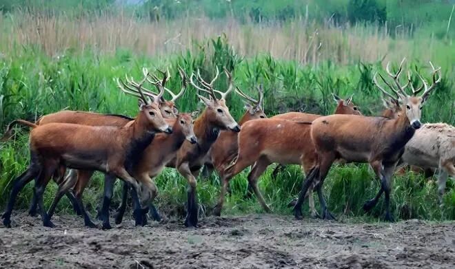 之后我国在江苏、湖北等地建立麋鹿保护区,助力麋鹿回归自然。2003年纯野生麋鹿在大丰保护区诞生,截至2025年,国内的麋鹿种群已达到1.5万头,保护区遍布全国,可以说已经基本上稳定。