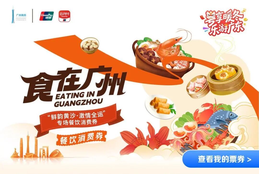 可通过云闪付APP或者指定的银行APP扫码领取“鲜韵黄沙·激情全运”专项餐饮消费券,在广州市餐饮消费券线下活动商户门店使用云闪付消费,可享满200减50、满500减100、满1000减200的优惠。